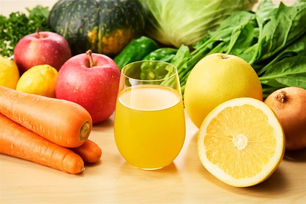 さらに、日向夏という柑橘も使用されており、これら二つの果物が融合することで、絶妙な甘さと酸味のバランスを生み出しています。この野菜・果実100%ミックスジュースは、砂糖を使用せず、1日のビタミンCも摂取することができます。そのため、朝食やリフレッシュを求める時にぴったりです。