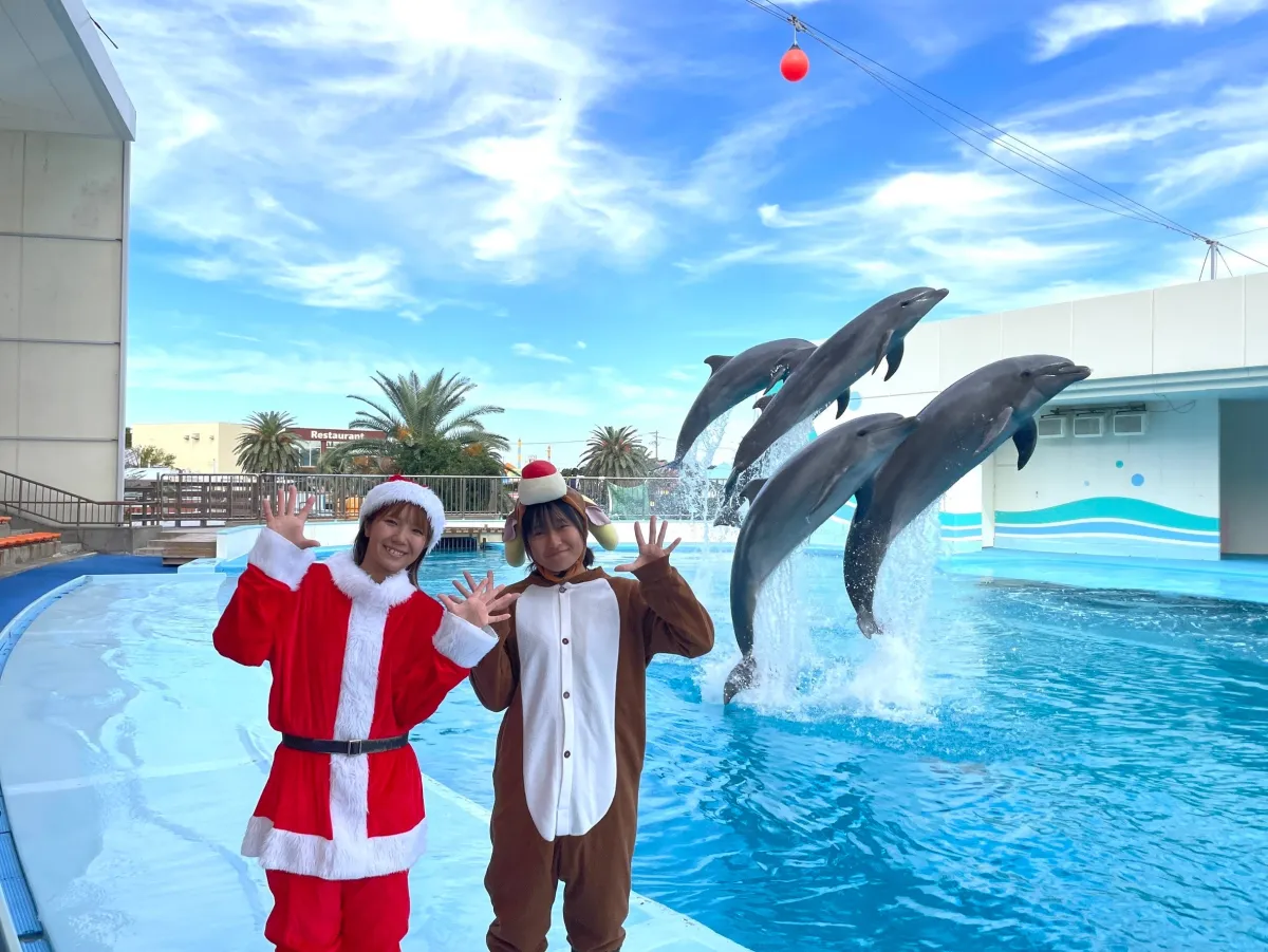 南知多ビーチランドでは、冬のアシカ・イルカショーも同時開催されます。ショーは、クリスマスやお正月をテーマにした特別バージョンが用意されており、観客を楽しませてくれます。