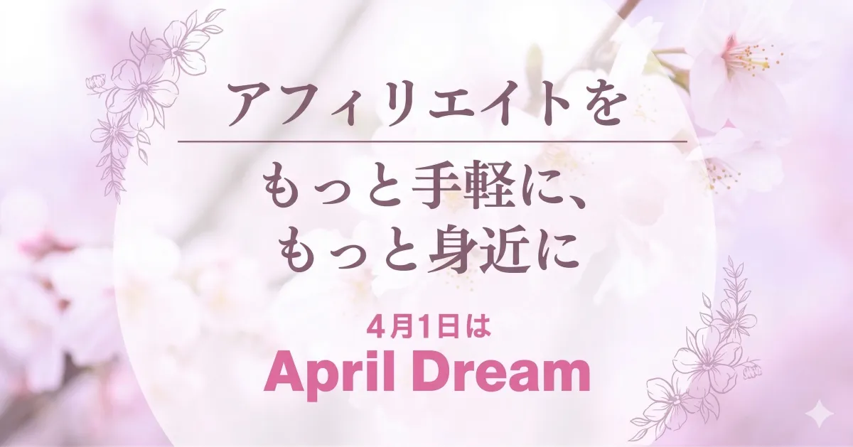 新しいネット集客手法の形成において、私たちは「April Dream」プロジェクトにも参加し、企業が持つ夢の実現を本気で後押ししています。この夢を胸に、今後ともアフィリエイト広告の普及に努めて参ります。私たちと一緒に、新しい集客の可能性を探ってみませんか?