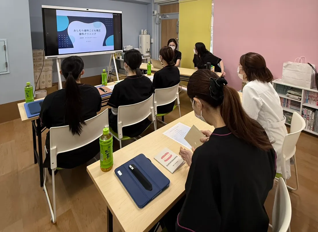 おしむら歯科は「地域に必要とされる歯科医院であり続ける」を基本理念とし、様々な施策を展開しています。この新規採用も、地域の方々に質の高い医療を提供するための戦略的な一歩といえるでしょう。入職した新スタッフは、早速オリエンテーションを受け、クリニックの方針や医療現場での役割について学んでいます。