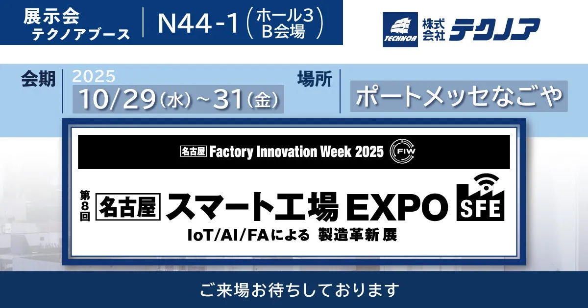岐阜県岐阜市に本社を置く株式会社テクノアは、2025年10月29日から31日まで、ポートメッセなごやで開催される「第8回名古屋スマート工場EXPO -IoT/AI/FAによる製造革新展-」に出展することを発表しました。これは製造業の「DX化」「自動化」「脱炭素」「人材不足対策」の4つのテーマを掲げた、製造業界の最前線が集まる一大展示会です。