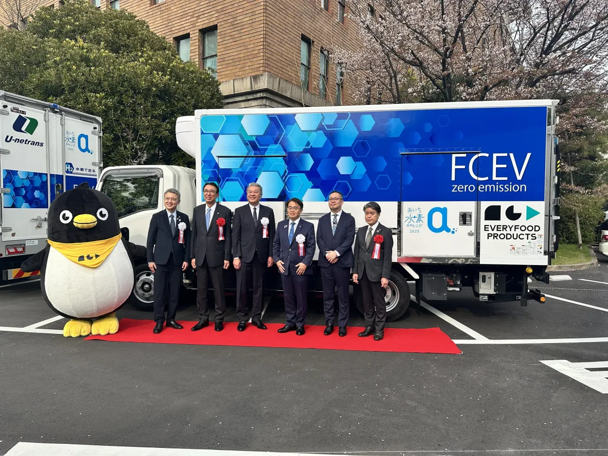 EVERYFOOD PRODUCTSは、企業や病院、福祉施設などへの食材の物流を担う企業として、日常的かつ安定した配送ネットワークを持っています。そこで燃料電池トラックの導入は、既存の環境負荷を低減する重要なテーマと考えられ、サプライチェーン全体での脱炭素化に向けた一歩となります。このトラックは、エコな燃料を使用することで、従来のディーゼルトラックに比べてCO2排出を大幅に削減することが期待されています。