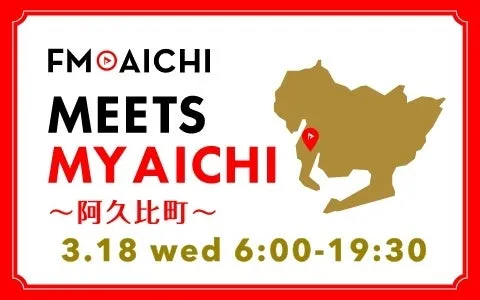 2026年3月18日(水)に放送されるFM AICHIの人気企画「MEETS MY AICHI」では、知多半島の中央に位置する魅力あふれる町、阿久比町を特集します。この特集は朝の6時から夜7時半までの生ワイド番組を通して、阿久比町の歴史、自然、グルメ、観光、文化といった多様な魅力を現地レポートと共にお届けします。