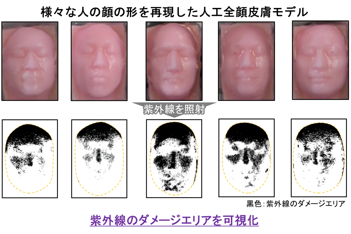 従来、紫外線の影響を調べるためには、実際の人間の皮膚に紫外線を照射する方法か、平坦な人工皮膚モデルを使用することが一般的でした。しかし、前者は安全性や被験者の負担の面で問題があり、後者も実際の人間の顔の立体的な形状を再現できなかったため、ダメージの受けるポイントを正確に評価することができませんでした。