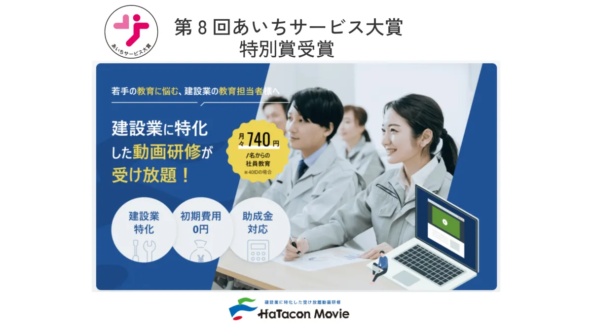 愛知県名古屋市に本社を置くハタコンサルタント株式会社が展開する「ハタコンムービー」が、先日開催された「第8回 あいちサービス大賞」にて特別賞を受賞しました。このサービスは、特に建設業界をターゲットにした動画を用いた研修システムで、デジタル技術を駆使して提供されます。