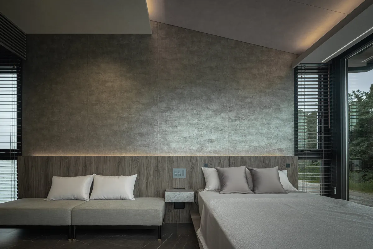 グッドデザイン賞の審査員からも高く評価されている「OURTH for STAY」。災害対策や宿泊用としてのニーズに応えつつ、従来の簡易的印象を超えた美しさがポイントです。勾配屋根は外観だけでなく、室内に広がりを持たせ、一流ホテルと同等のクオリティを演出しています。収納に関しても、優雅かつ実用的なデザインを採用しており、限られたスペースを最大限に活用しています。