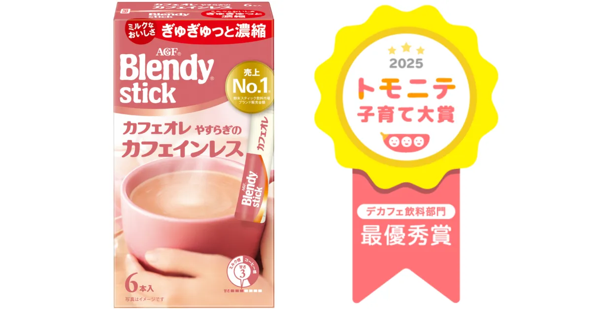 味の素AGF株式会社の人気商品「ブレンディ®」スティック カフェオレ やすらぎのカフェインレスが、株式会社エブリーが主催する「トモニテ子育て大賞2025」の「マタニティグッズ デカフェ飲料部門 最優秀賞」を受賞しました。この受賞は、妊娠中や子育て中の女性を中心に高まるカフェインレス飲料への関心を背景に、同商品のやさしい味わいと安心感が評価された結果と言えます。