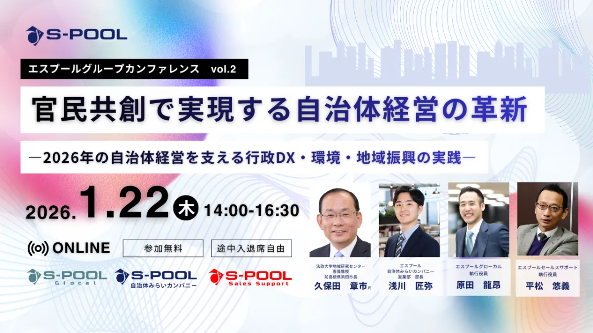 2026年に向け、自治体経営を支えるオンラインカンファレンスが開催されます。主催は株式会社エスプールで、テーマは「官民共創で実現する自治体経営の革新」です。このカンファレンスでは、人口減少や財政制約など、厳しい環境に直面する自治体に対し、官民の連携による実践的なアプローチを共有することを目指しています。