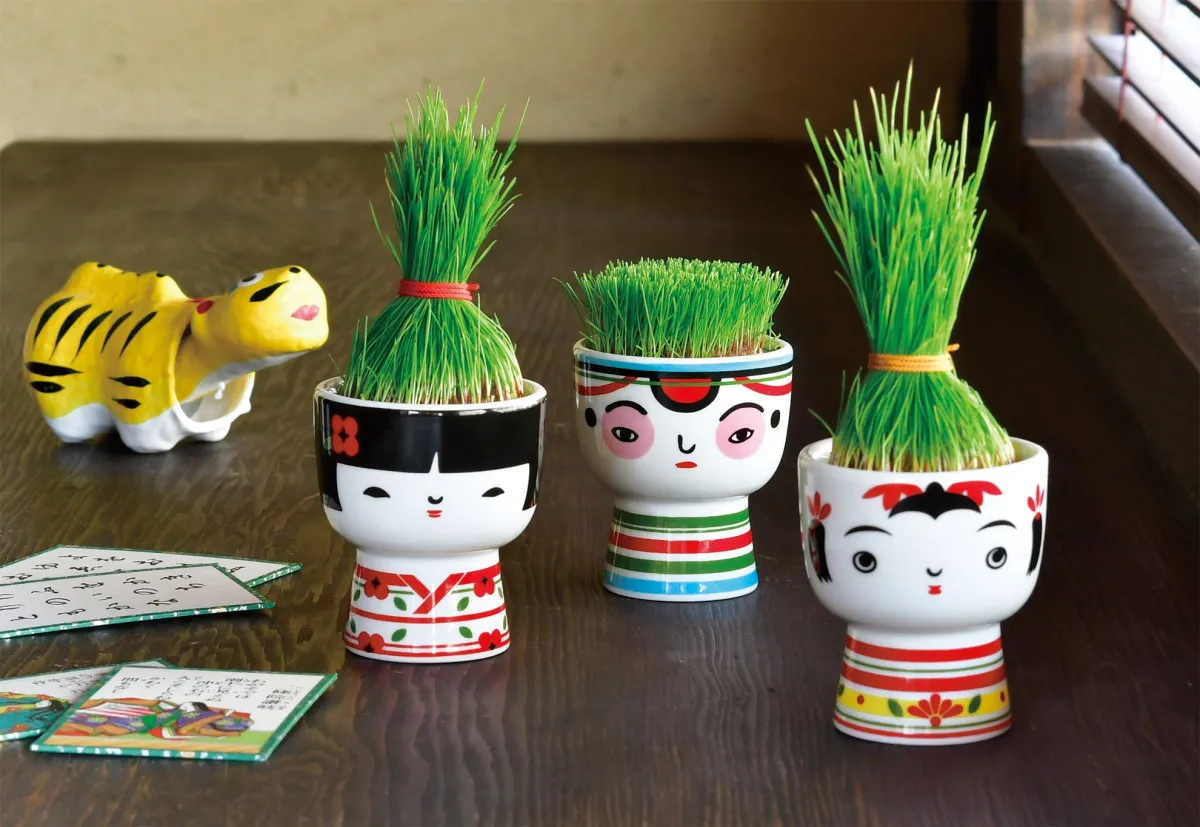 芝を髪の毛に見立てたヘアアレンジを楽しむことが特徴です。例えば、鮮やかな赤い花模様の「おちょぼ」や、元気いっぱいの「ぼうず」、穏やかな「おかっぱ」など、それぞれのデザインが魅力的です。これらのデザインは何度も見返したくなるような愛らしさを持ち、インテリアとしても素晴らしいポイントを加えています。