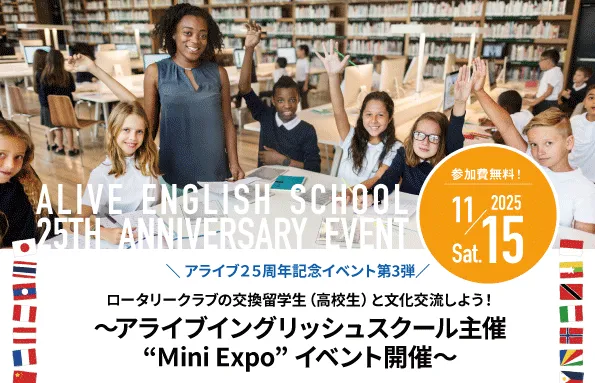 2025年11月15日(土)、愛知県名古屋市で「文化交流 Mini Expo」が開催されます。この特別なイベントは、株式会社アライブが創立25周年を記念して企画されたもので、世界13カ国から集まったロータリークラブの交換留学生と地元の子どもたちが交流する貴重な機会です。