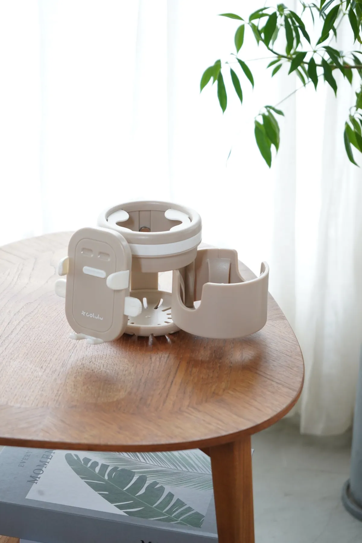 2つのクランプ設計によって、重たい飲み物を置いても安定感抜群。走行時のぐらつきを気にせず、安心して使用できます。そして新たに登場したダークグレーを含む全6色のカラーバリエーションは、様々なベビーカーに合わせてコーディネートが楽しくなります。