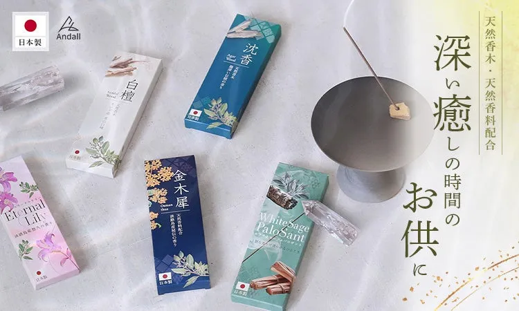日本製のこだわりを持つAndallのお香は、熟練の職人が伝統の製法で手作業で生産しています。使いやすく、初心者でも扱いやすいように説明書が付属しているため、安心して楽しむことができます。
