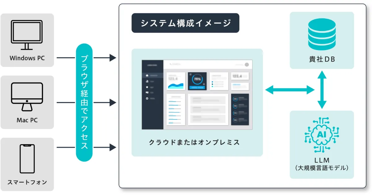既存の業務システムやデータベースと容易に統合できるため、新たな導入進めることができ、現場での負担を軽減します。業界特化型のユースケースに対しても柔軟に対応します。