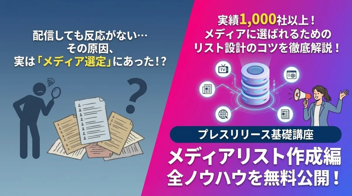 広報の現場で、「プレスリリースを配信しても、成果が出ない」といった悩みを抱える担当者は多いかもしれません。特に前任者から引き継いだ古いリストに頼っていては、効果的な広報活動は難しいもの。そんな悩みを解決すべく、PR支援の実績が豊富な株式会社PRIZMAが、メディアリスト作成に関するノウハウを無償で公開しました。
