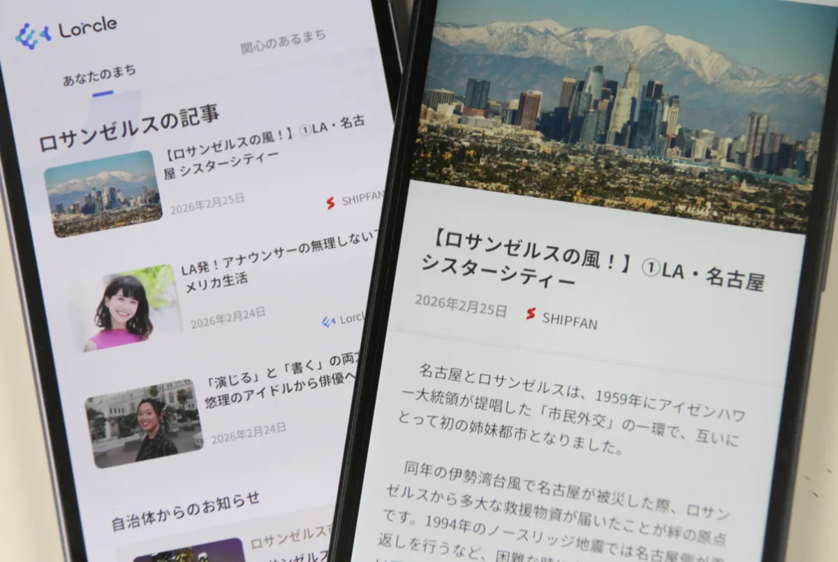 ロークルは中日新聞社が運営する地域情報アプリで、地域ニュースや自治体、企業、団体からの情報が統合されているのが特徴です。利用者は無料でアプリをダウンロードし、自分が住んでいる地域だけでなく、興味がある別の地域についても情報を受け取ることができます。たとえば、ロサンゼルス市に関する情報を簡単に探ることができ、さらに特別コーナーも設けられ、現地の日本語メディアとも連携しています。