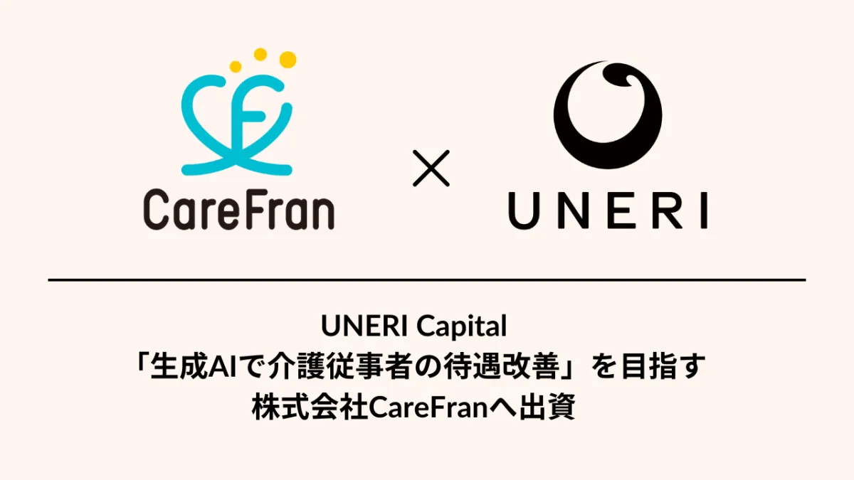 UNERIは、CareFranの代表である久保田洋介氏の業界経験や、厳しい現場の理解を強く評価し、今回の出資に至りました。久保田氏は、介護業界に十年にわたり従事してきた背景を持ち、複数のスタートアップでの経験を通じて得た専門知識を活かして、CareFranのビジョンを実現しようとしています。